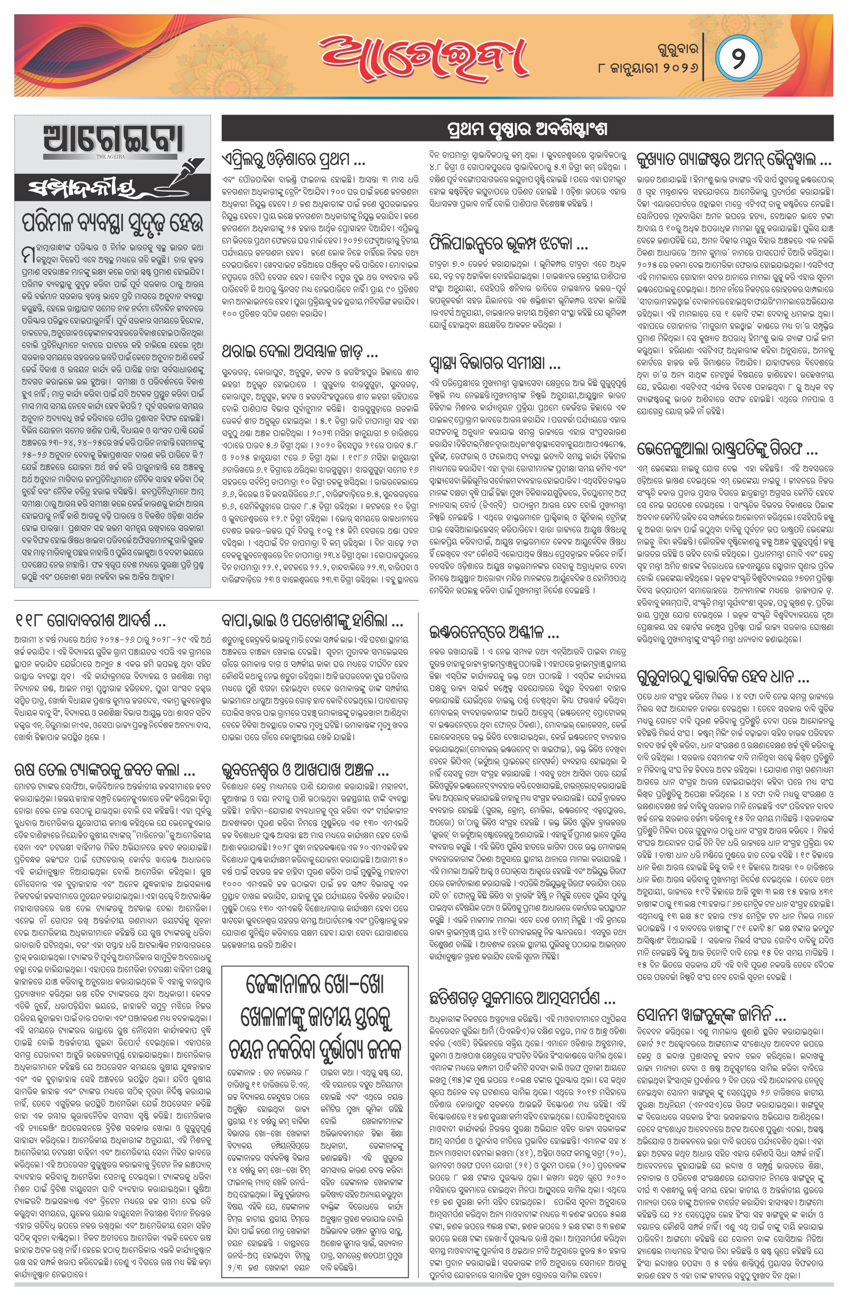 The Ageiba News, Odia Daily Newspaper Page: 2 << First << 2 >> Last >> Page 1Page 2Page 3Page 4 × The Ageiba News, Odia Daily Newspaper Page-1Page-2Page-3Page-4 << First << 2 >> Last >> Page-1Page-2Page-3Page-4 Page-2