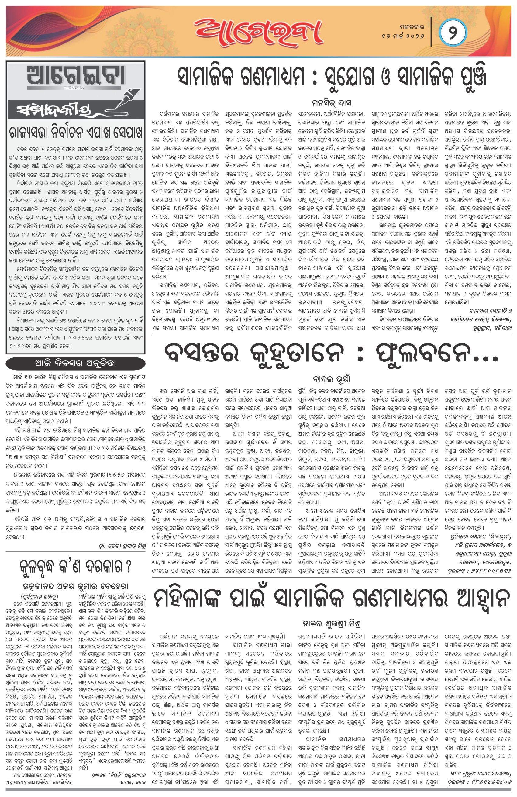 The Ageiba News, Odia Daily Newspaper Page: 2 << First << 2 >> Last >> Page 1Page 2Page 3Page 4 × The Ageiba News, Odia Daily Newspaper Page-1Page-2Page-3Page-4 << First << 2 >> Last >> Page-1Page-2Page-3Page-4 Page-2